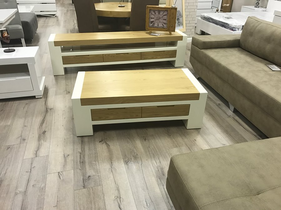 מזנון ושולחן דגם 2 קומות באלון בשילוב שלייפלייק מידות מזנון 200 מטר שולחן 120 / 60