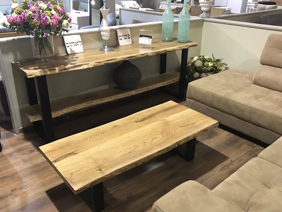 מזנון ושולחן דגם פורסט באלון גזום עץ מלא ונירוסטה