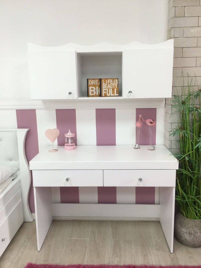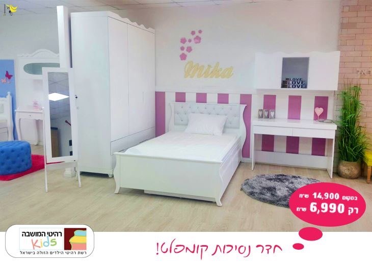 חדר לילדות הכולל מיטה + מיטת חבר + מגירות + שולחן כתיבה 120 + כוורת + ארון 3 דלתות הכל בעיצוב לואי פרובנס עם כרית בגב מיטה מידות המיטה 120/190