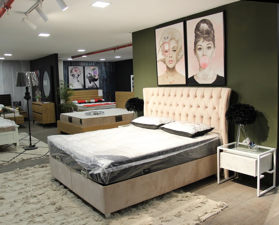 מגוון מיטות מרופדות כולל ארגזי מצעים